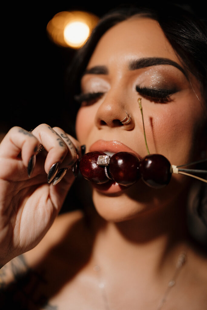 Located in the heart of the Las Vegas Arts District, Dark Sister is known for its moody atmosphere, eclectic decor, and cozy interior. The dim lighting, rich textures, and vibrant personality of the bar created the perfect backdrop for an engagement session that felt intimate, relaxed, and a little unconventional.